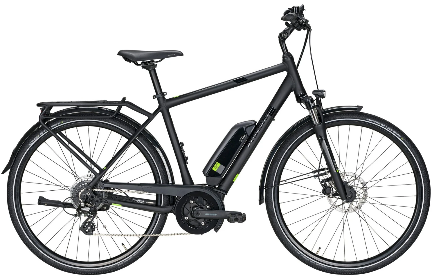 Das Solero E8 Plus überzeugt als Trekkingbike für entspannte Touren wie zügige Alltagsfahrten mit viel Komfort und guter Ausstattung. Sein Active-Plus-Motor von Bosch gefällt mit harmonischem Ansprechverhalten, erlaubt dabei aber durchaus flotte Beschleunigung. Das in drei Rahmenformen verfügbare E-Bike fährt sich mit seiner aufrechten, kompakten Sitzhaltung und der sensiblen Federgabel sehr angenehm, dabei ist es funktionell ausgestattet. Am stabilen rahmenfesten Gepäckträger lassen sich Taschen und Körbe sicher und schnell befestigen; 8-Gang-Kettenschaltung und Scheibenbremsen bieten hohen Bedienungskomfort. In mit 400 und 500 Wattstunden verfügbare Rahmenakku lässt sich zum Laden leicht abnehmen; zur Ausstattung gehören LED-Beleuchtung und ein stabiler Seitenständer.