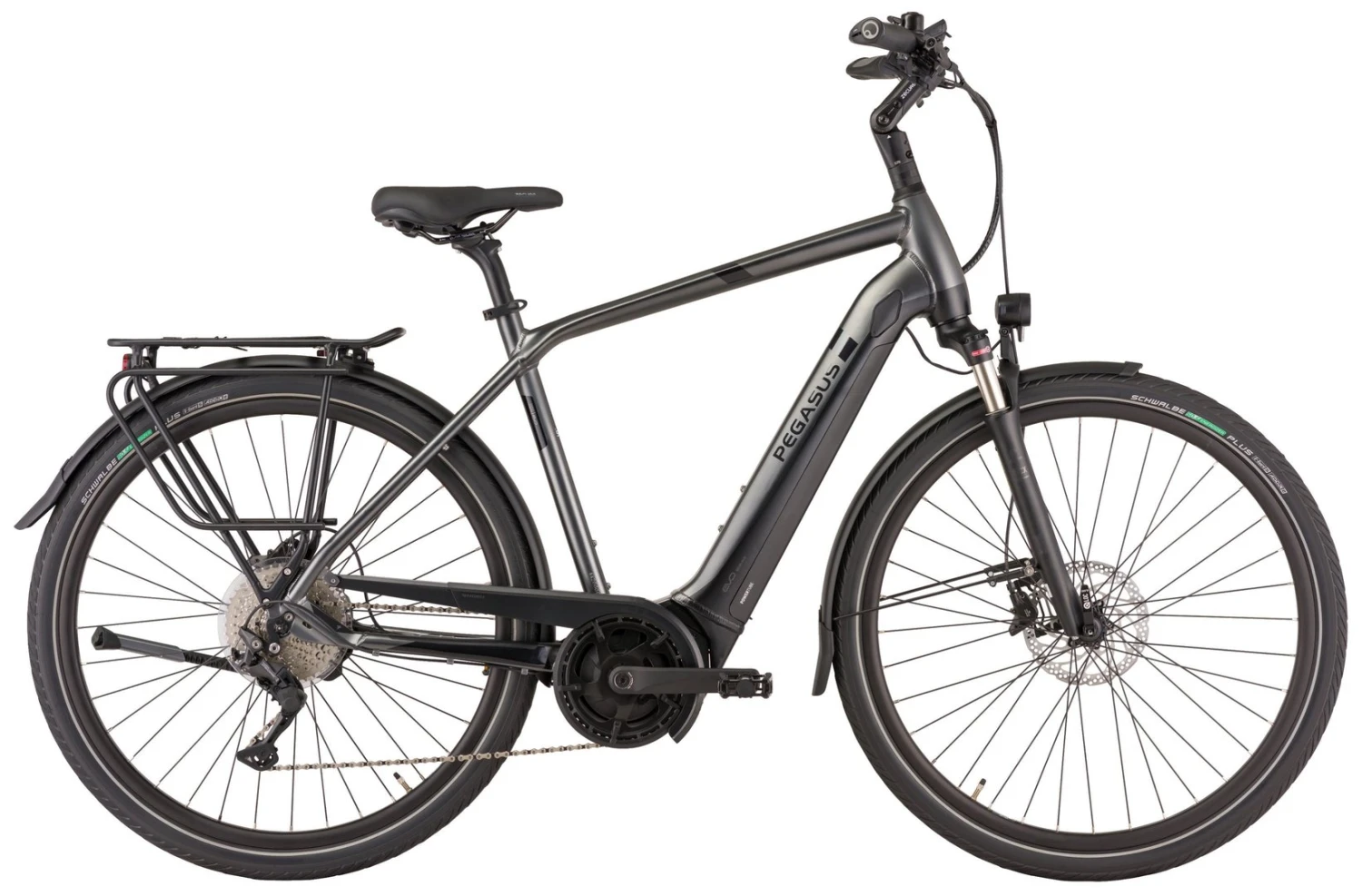 Hydroforming 6061 Alu-Rahmen mit tapered Steuerrohr, NCX-32-DS Federgabel, Deore 10-Gang Schaltwerk, Schalthebel und Zahnkranz (11-42), Tektro Volans Scheibenbremsen mit 2/4-Kolben und 180mm Bremsscheiben, Andra-25 Hohlkammerfelgen, Bosch Performance Mittelmotor 250W/65Nm, integrierter 400Wh (Serie), 500Wh oder 625Wh (Aufpreis) Akku 36V Li-Ion, Energizer Plus Reifen 55-622, Fuxon FS-50 LED-Lampe mit 50 Lux, 12 Volt Lichtanlage, Zecure Sattel, Sattelstütze, Lenker und verstellbarer UP-Vorbau, zulässiges Gesamtgewicht: 180 kg